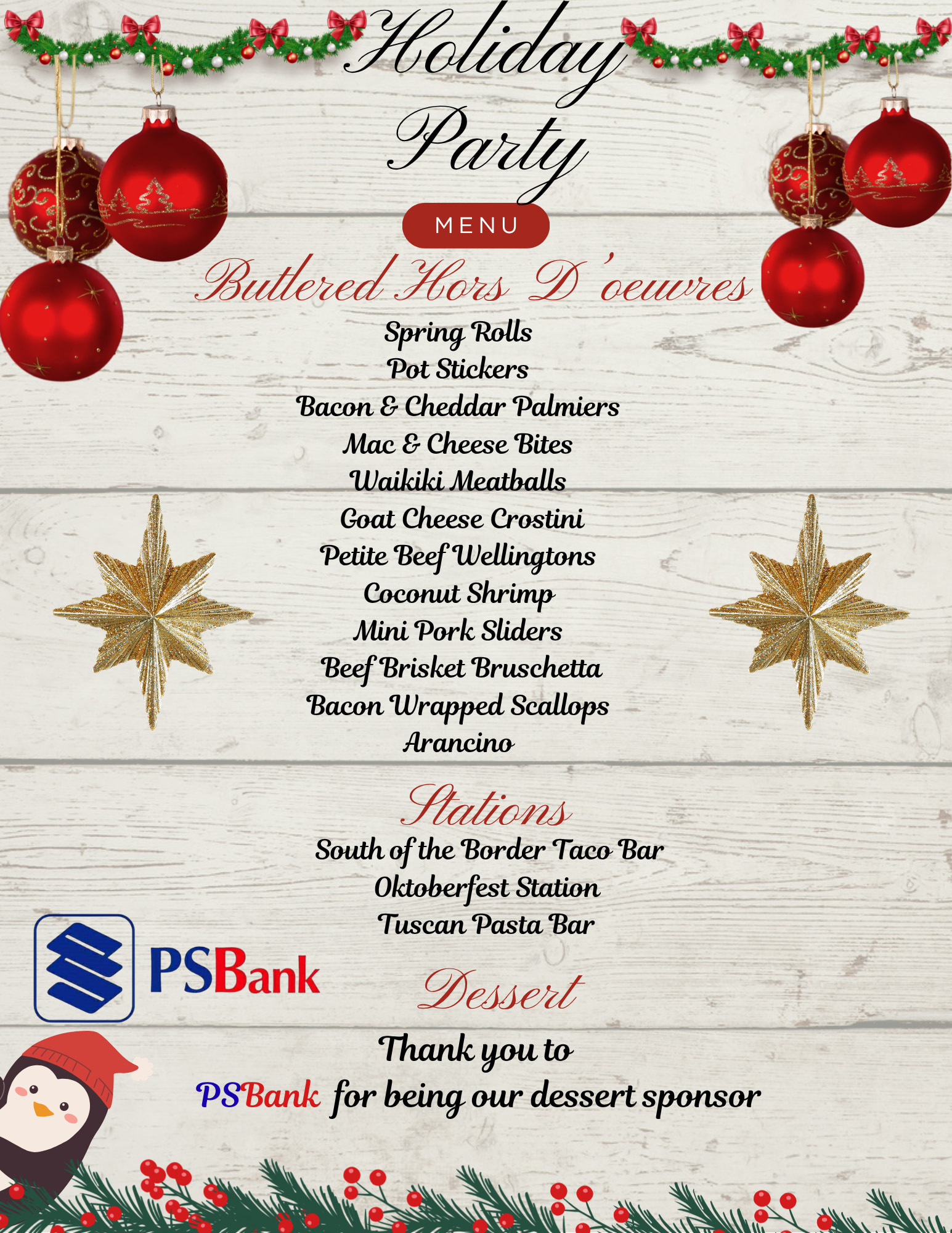 We’re delighted to return to Trout Lake Resorts, a venue that was so well-received last year! Enjoy a night filled with great company, delicious food, and the always-popular White Elephant Gift Exchange—a beloved holiday tradition that’s sure to spark laughter and fun.